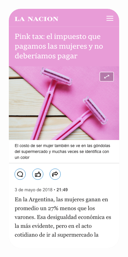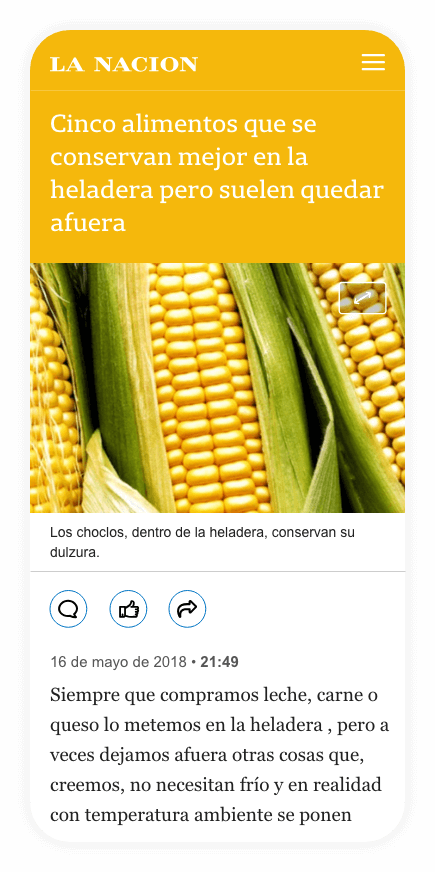 Como factor diferencial, en web mobile y apps, la apertura de la nota toma el color predominante de la imagen, generando un impacto visual en el usuario.