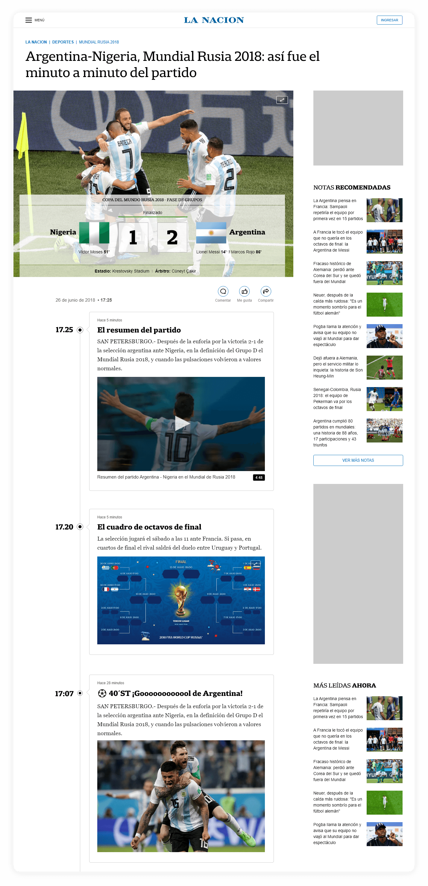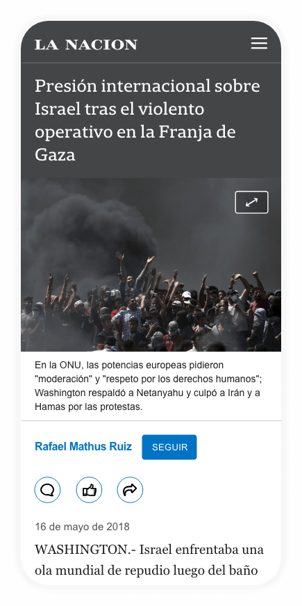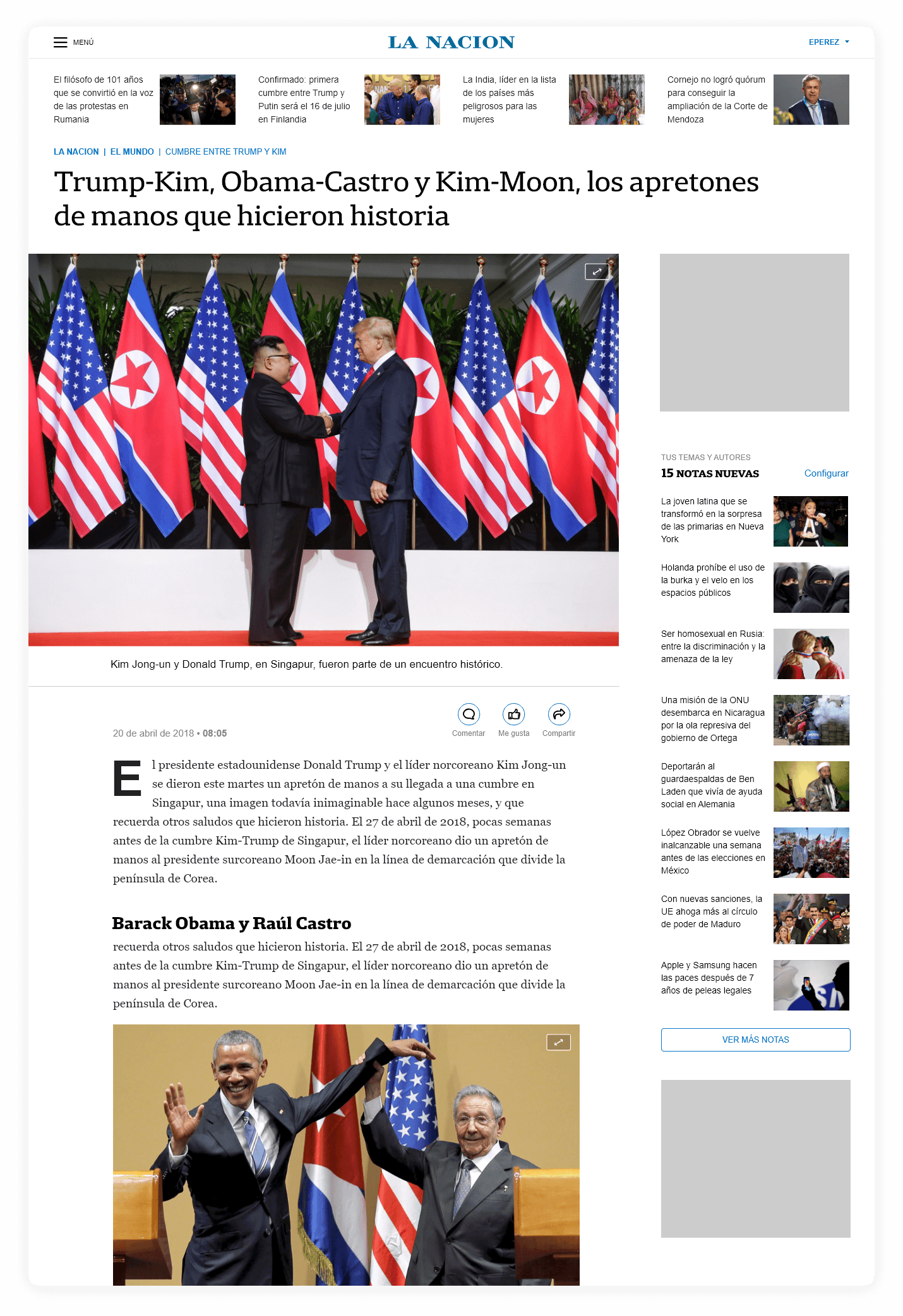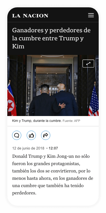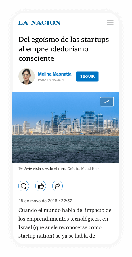 LA NACION es uno de los principales diarios digitales de argentina. Posee 6 millones de usuarios únicos mensuales. Ofrece su contenido en versión web • web mobile • app Android • app iOS. A partir del 2017 el 80% de los usuarios provienen desde web mobile.