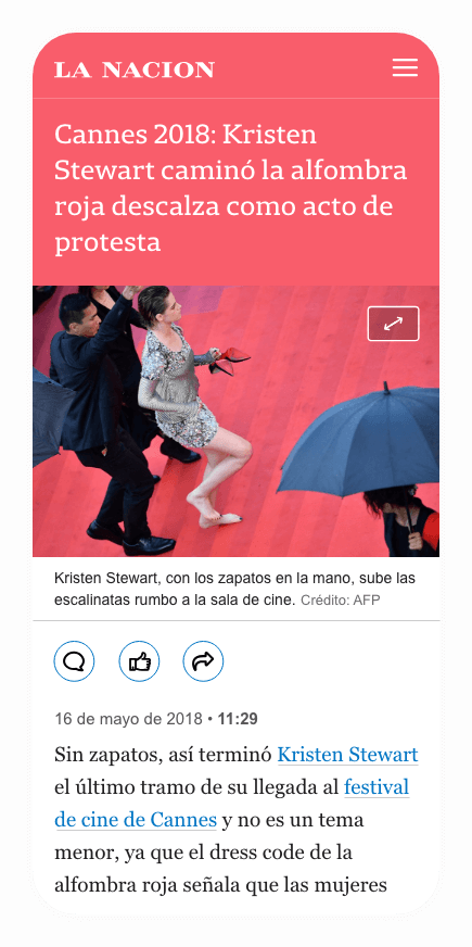 Como factor diferencial, en web mobile y apps, la apertura de la nota toma el color predominante de la imagen, generando un impacto visual en el usuario.