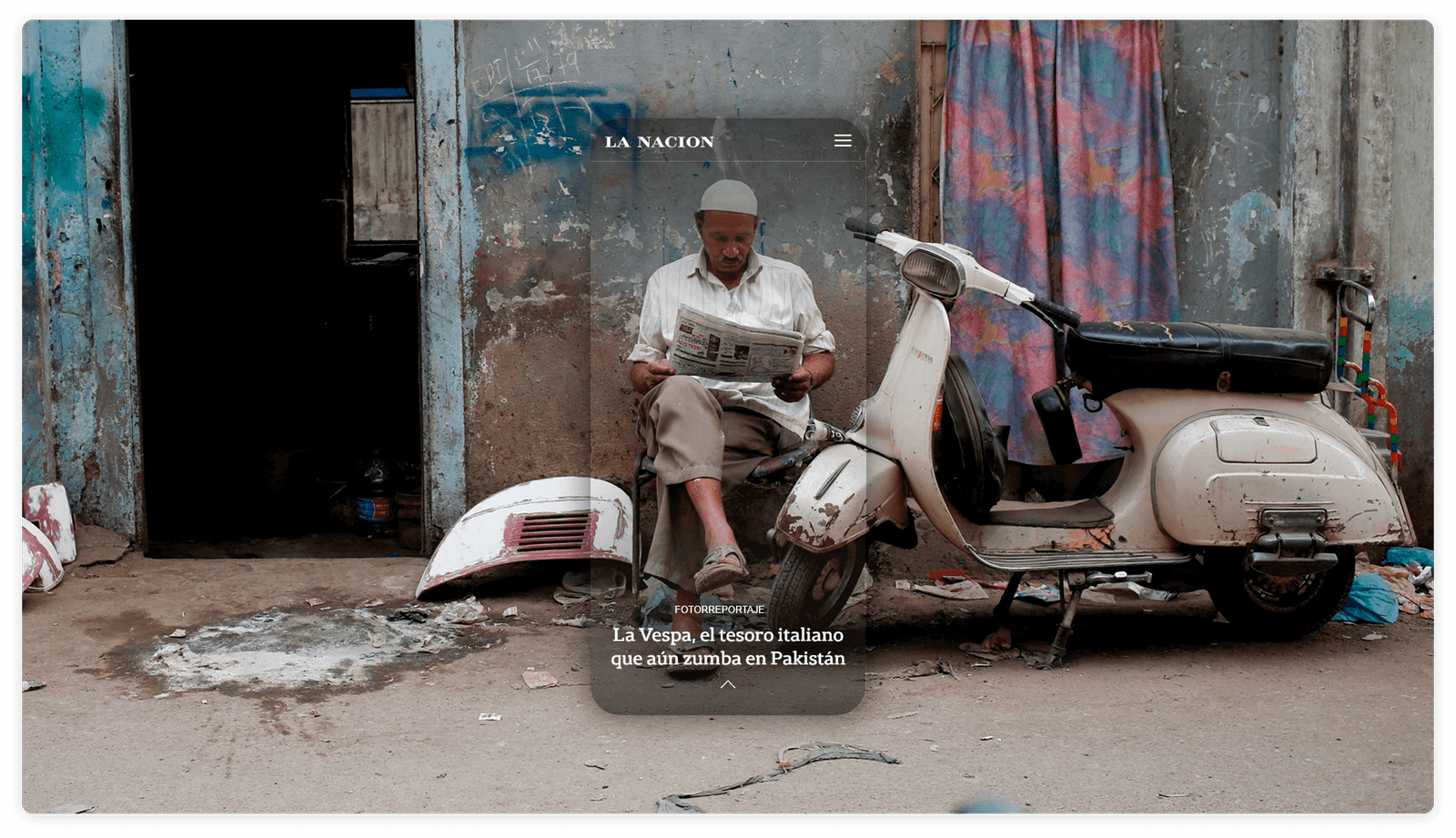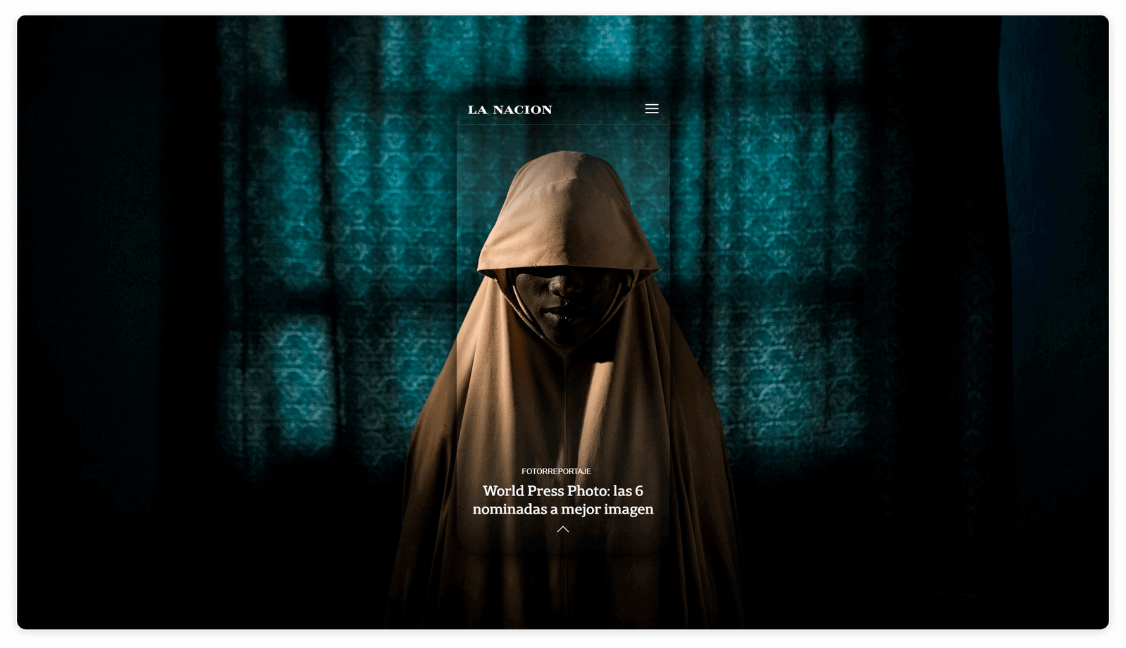 El template storytelling permite una imagen o video full size. Los editores pueden elegir una misma apertura para desktop / mobile, o una diferente para cada dispositivo.
